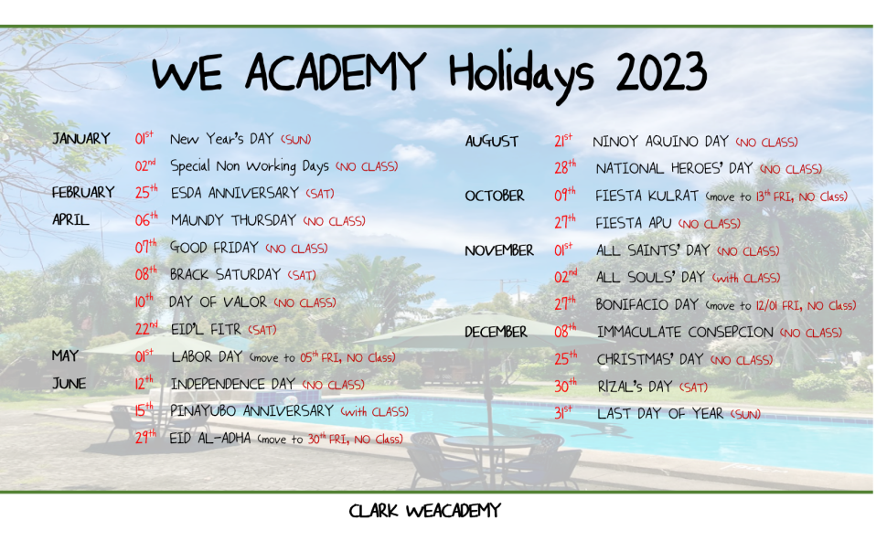 * Facebook : https://www.facebook.com/weacademy2016* Instagram : https://www.instagram.com/we_academy2022* YouTube: https://www.youtube.com/@weacademyclarkcityphilippi7538* naver vlog (Korean ): https://blog.naver.com/weacademy2016